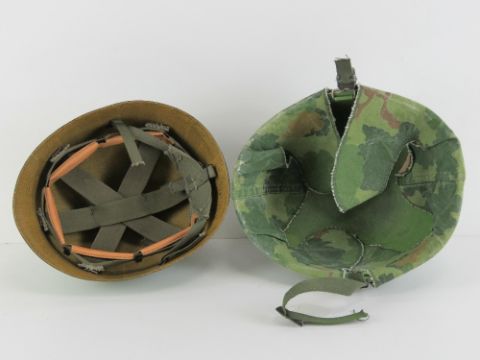 A US 5th Cavalry Vietnam era helmet with V air markings upon.