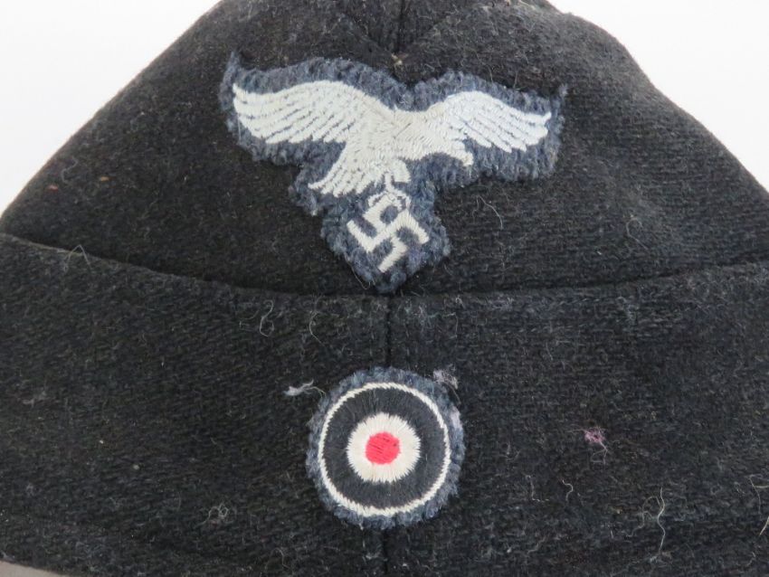 A WWII Lufwaffe Panser Hermann Göring Division side cap in felt complete with cloth badges and having cotton interior stamped Berlin 1942.