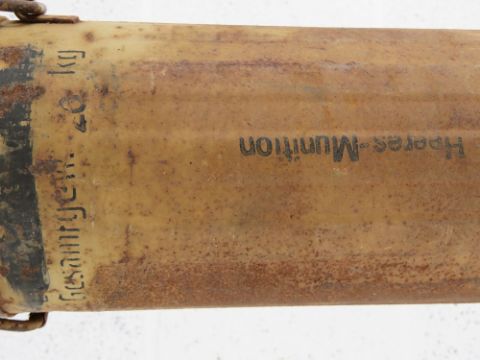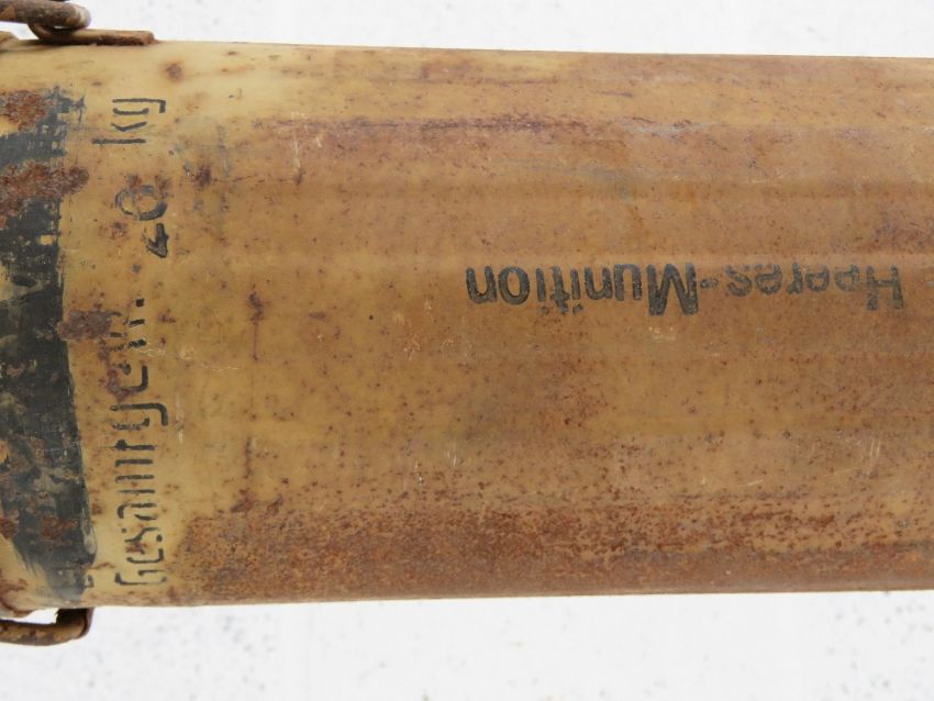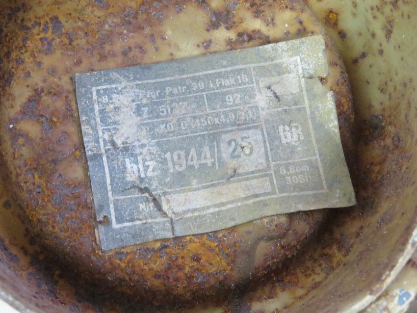A WWII German 8.8cm Flak shell transit case with stencilling and label upon, dated 1944.