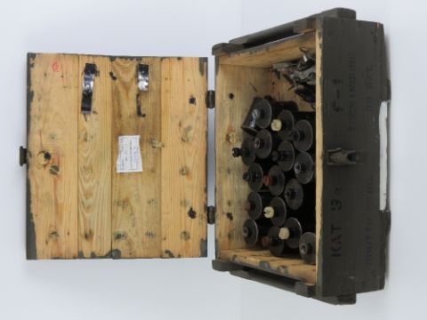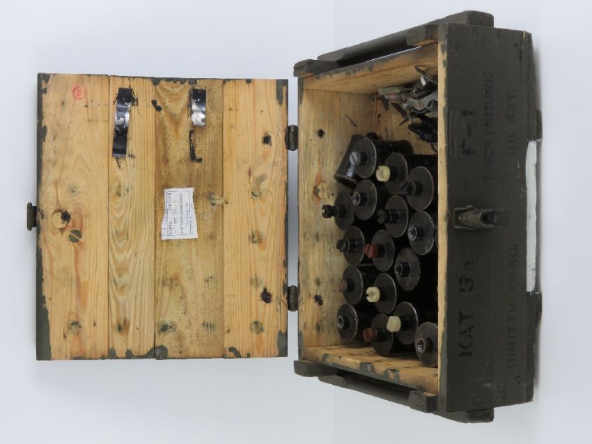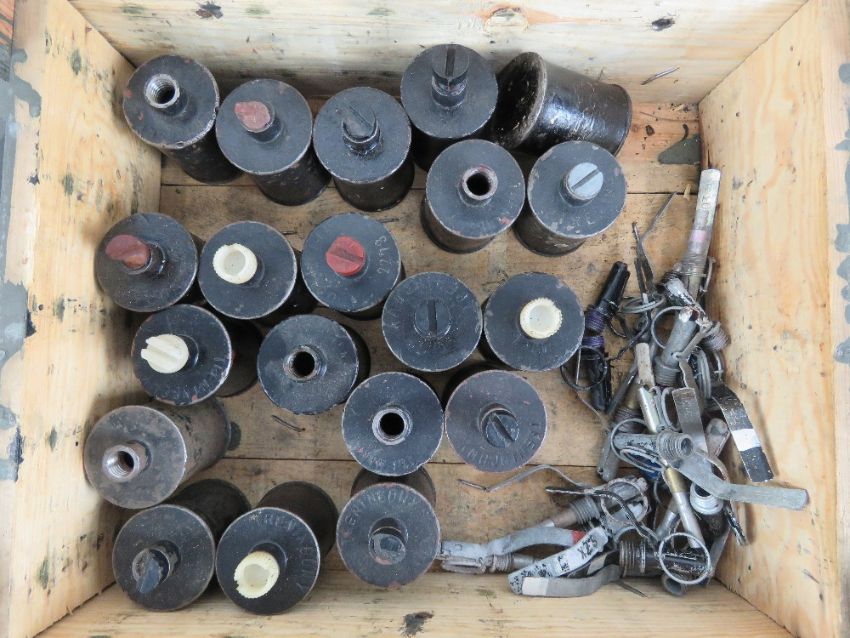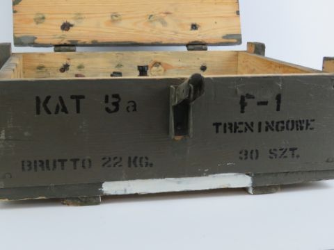 A box of twenty inert RG-42 grenades with pins.
