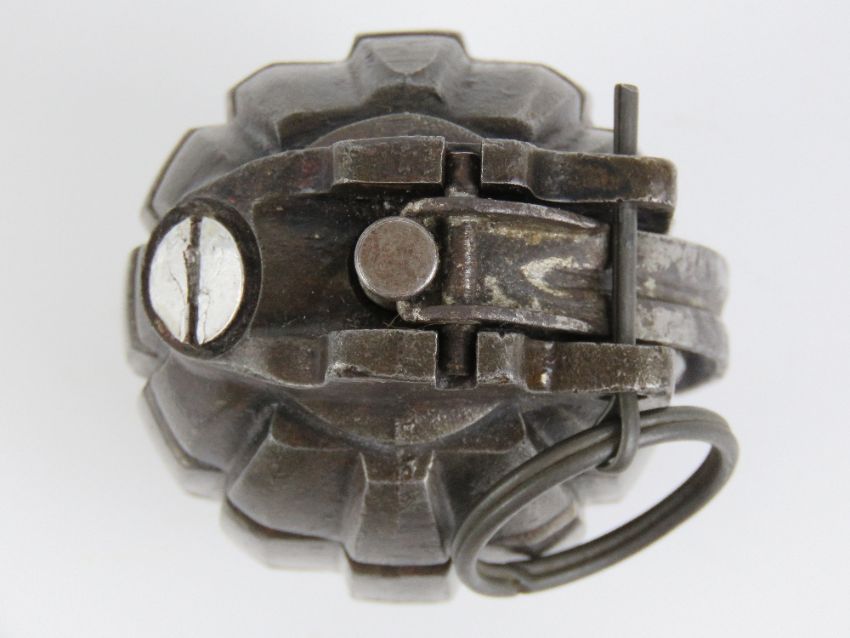 An inert Mills No5 Mk1 grenade, dated 1916, C.A.V.
