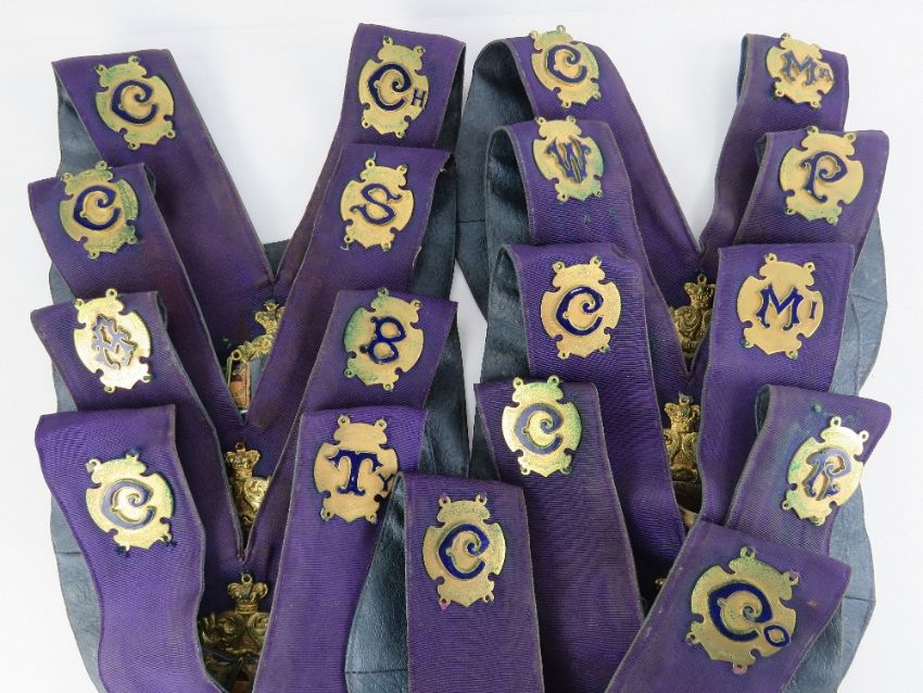 The Royal Antediluvian Order of Buffaloes (RAOB); nine collars being C.S, W.P, C.MA, C.TY, C.R, C.CO, C.CH, A.B, and C.MI for Wyelician Lodge No588, made by F.C. Parry Birmingham.