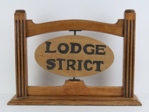 The Royal Antediluvian Order of Buffaloes (RAOB); A 'Lodge Strict' 'Liberty Hall' rotating sign from an RAOB lodge, measuring 55.5cm wide. Provenance: From the collection of a member of various lodges since 1980s.