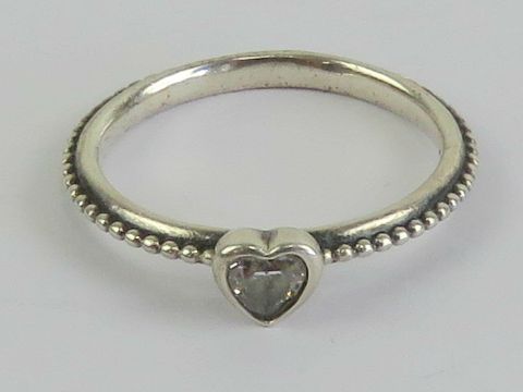 A silver Pandora ring having heart set with white stone to centre, marked S925 ALE 54, in presentation box. Size N-O.