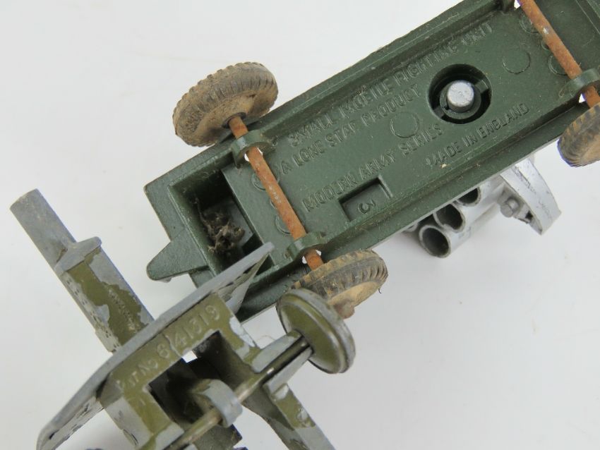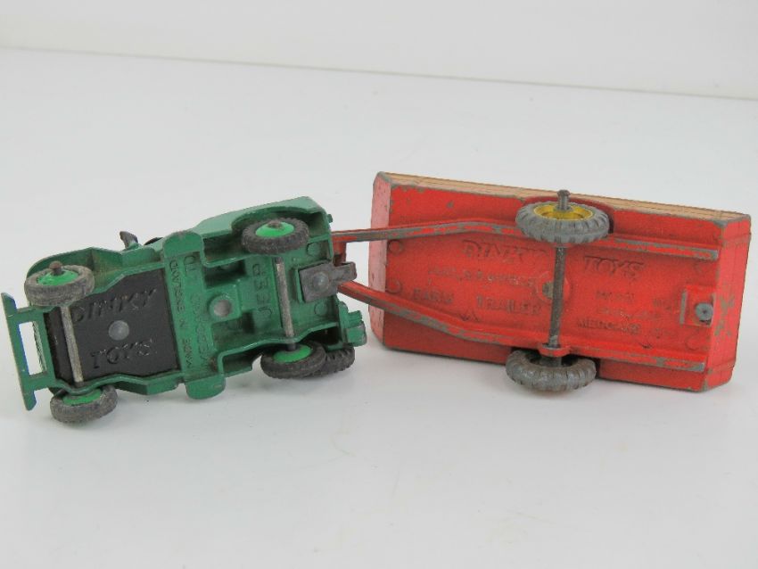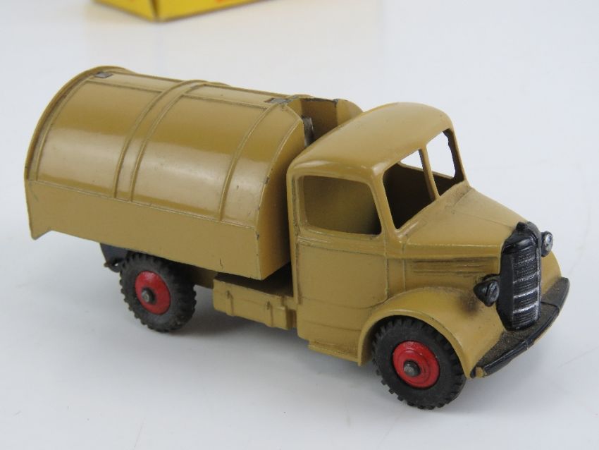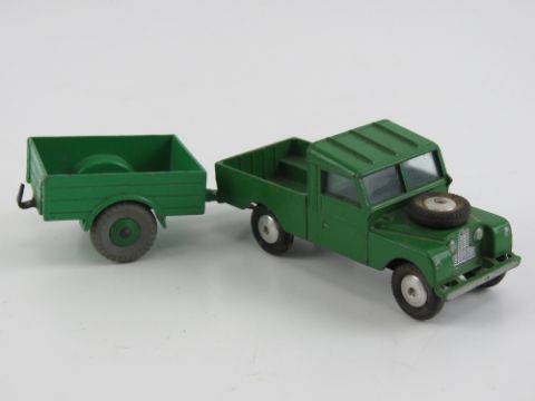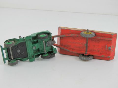 A Dinky Toys Bedford Dustcart No252 with original box, together with a Dinky Toys farm trailer, Ford Zepher, Jeep and trailer, a Corgi 109" Land Rover, and two military gun carriages. Unboxed. Eight items.
