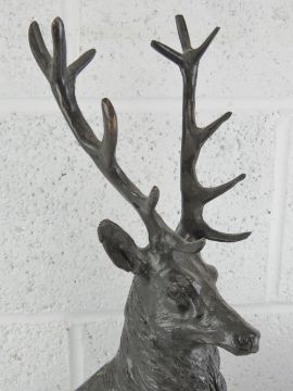 Jules Moigniez (French: 1835-1894) Les Animalier; a fine and impressive cast bronze opposing pair of stags, each raised upon a rocky outcrop over a polished oval marble base, each signed J Moigniez, each standing 75cm high.