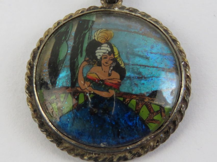 A c1970s butterfly wing pendant in sterling silver with fine chain necklace.
