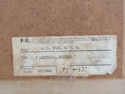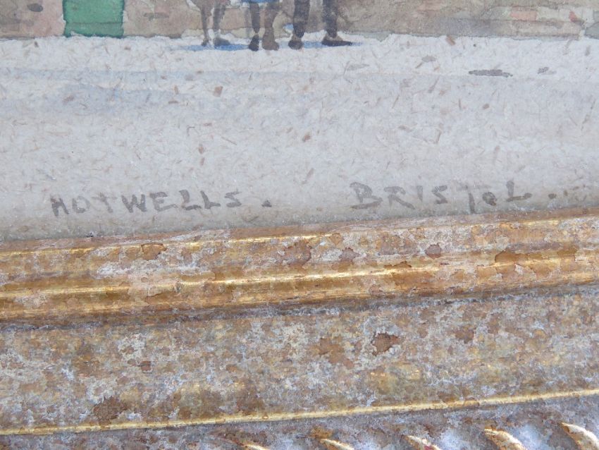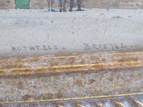 Watercolour; the colonnade Hotwells Bristol, Clifton Suspension bridge beyond, c1930s, 24 x 33cm.