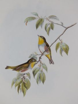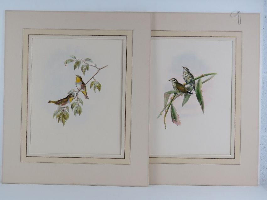 A pair of John Gould Birds of Great Britain (1862-1873) hand coloured lithographs 'Vivia Innominata' and 'Zosterops Erythopleurus', lithographed by John Gould and H.C. Richter, printed by Walter & Cohn, each mounted, unframed, overall size of each 65 x 54.5cm.