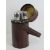 A trio of triangular spirit flasks within pigskin leather carry case.