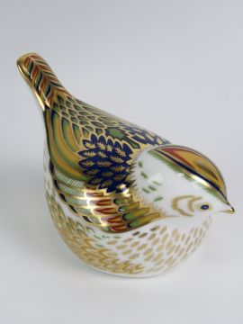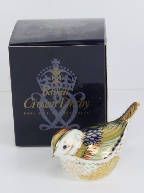 Royal Crown Derby Paperweight; Collectors Guild Exclusive, 'Firecrest', gold stopper or button, with box.