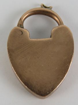 A vintage rose metal heart padlock clasp, no hallmarks, 2.9g.