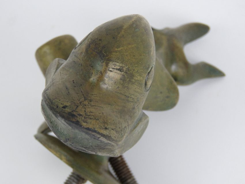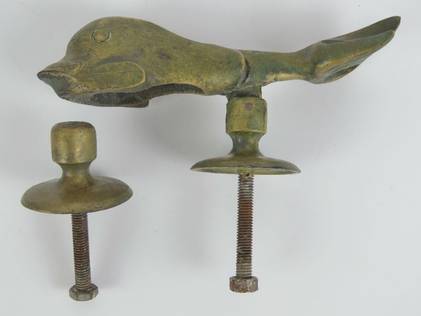 A heavy cast brass door knocker in two sections, in the form of a mythological sea creature, marked Abela & Sons Malta.