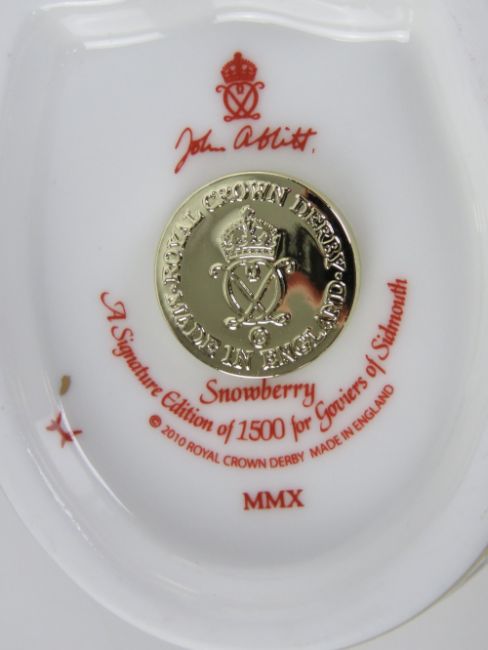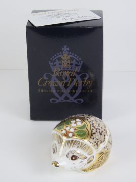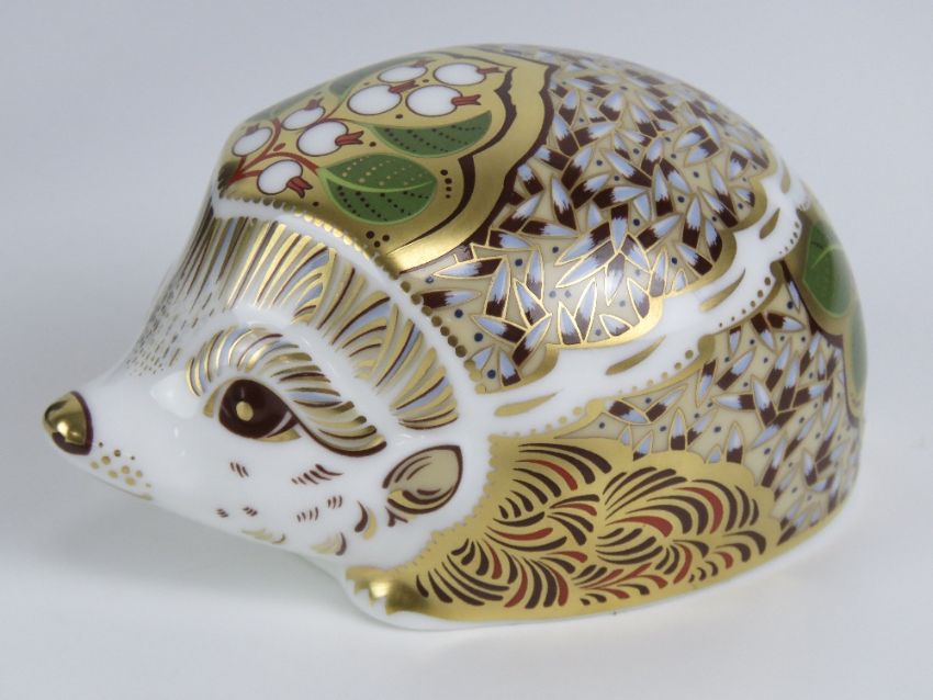 Royal Crown Derby Paperweight; a Signature Edition Goviers of Sidmouth 1211/1500 'Snowberry', large Christmas hedgehog, gold stopper or button, with card and box.