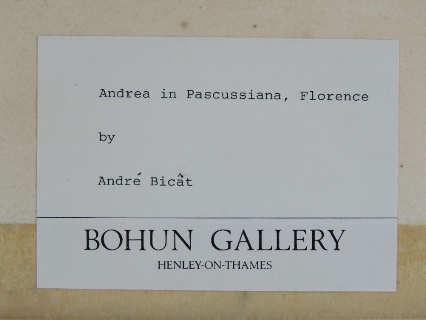 Andre Bicat (1909-1996) impressionist oil on board; Andrea in Pascussiana, Florence, rural view, signed lower right, Bohun Gallery label verso, 22.5 x 19cm.
