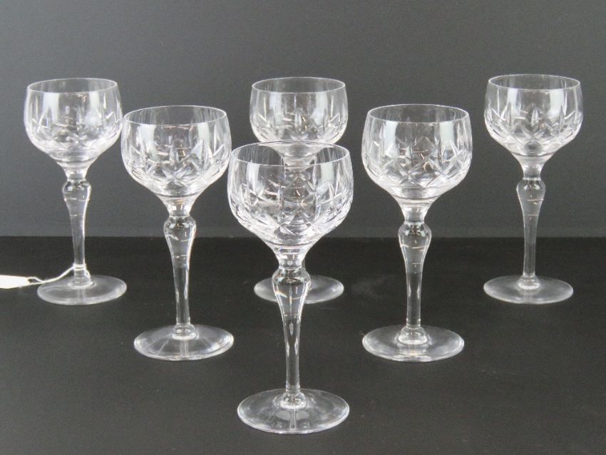 A set of six cut glass hock glasses standing 17.5cm high.