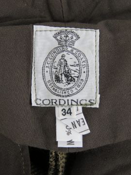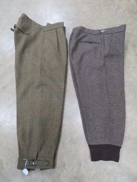 Two pairs of tweed shooting or hunting britches; one made by Cordings & Co Ltd, size34, the other approx 33" waist.
