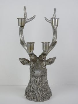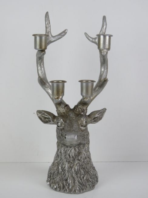 A table decoration in the form of a stags head complete with five point antlers having four candle sconces upon, 32cm high.