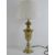 A brass table lamp base of urn form having silk lamp shade, all measuring 60cm high.