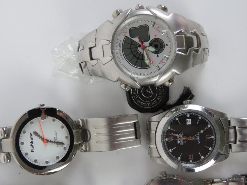 Seven assorted stainless steel wristwatches including; Limit, OTS, Claude Valentini, Slazenger, etc.