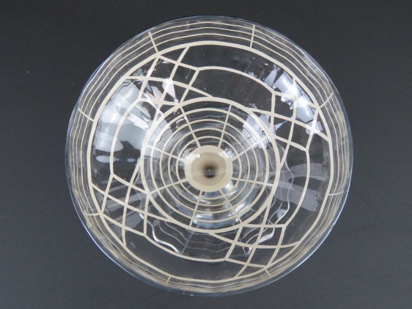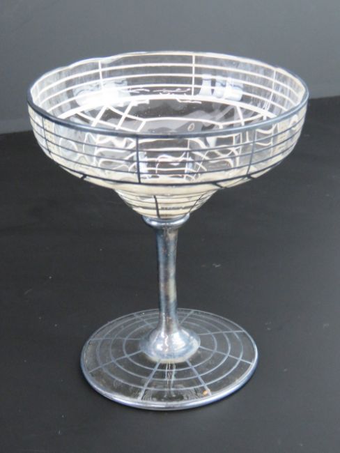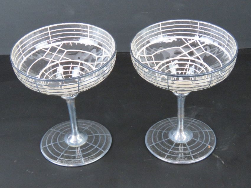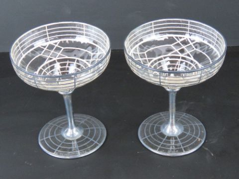 A pair of Art Deco silver overlaid glass champagne saucers, standing 11.5cm high.
