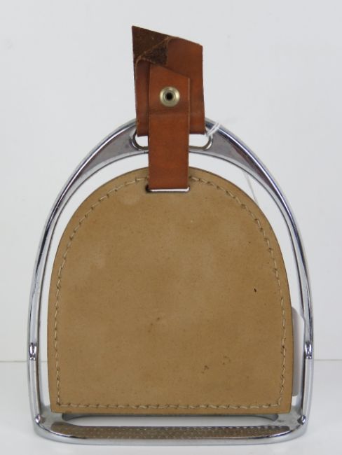 A perpetual desk calendar in the form of a stirrup measuring 18.5cm high.