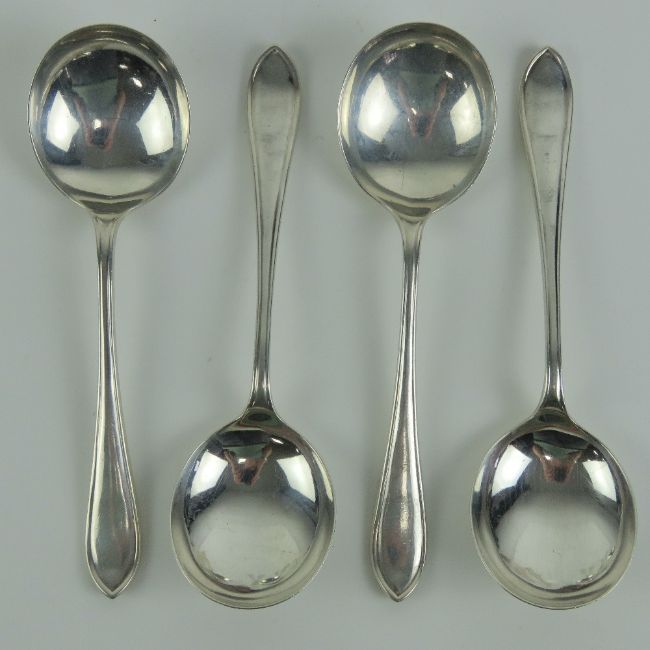 A set of four HM silver soup spoons, Sheffield 1931 hallmarks throughout with makers marks for Viners Ltd - Edward Viner, 8.1ozt.