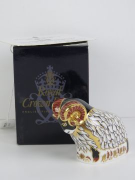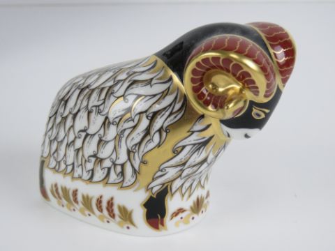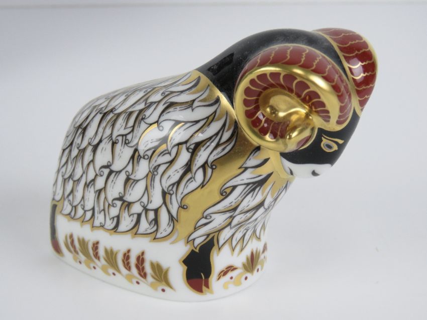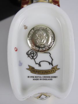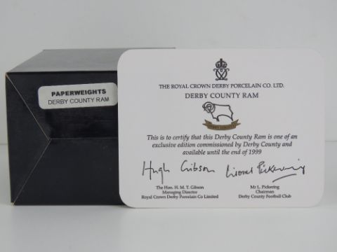 Royal Crown Derby Paperweight; the Exclusive Edition commissioned by Derby County 'Derby County Ram', gold stopper or button, with card and box.