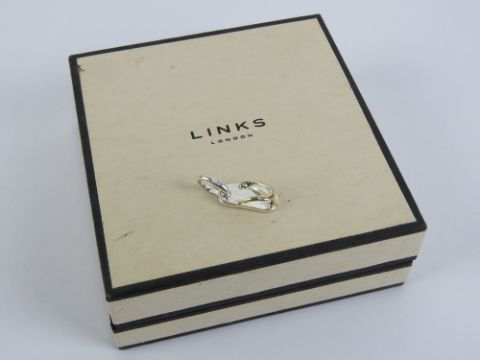 Links of London; a 925 silver charm in the form of a flip flop, having Links of London mark upon and in presentation box.