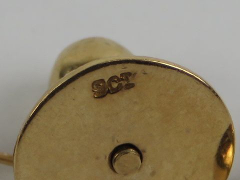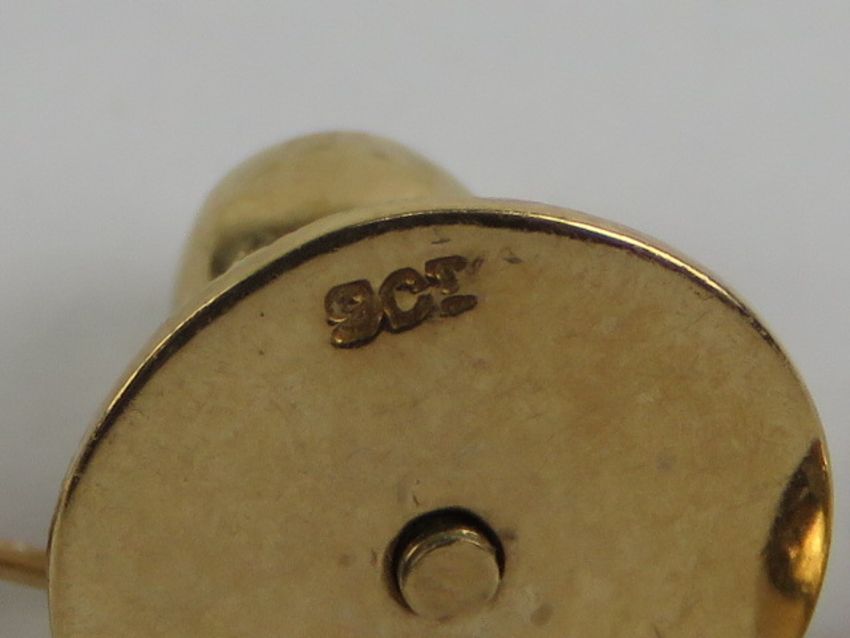 A pair of 9ct gold stud earrings, stamped 375, together with a 9ct gold shirt stud. Total weight 1.7g.