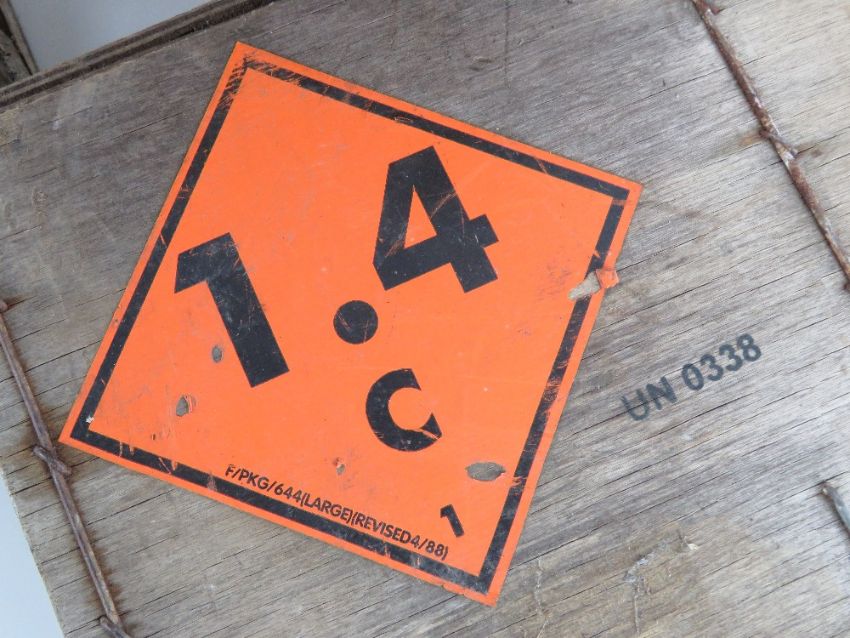 Three 5.56mm blank L18A1 transit wooden crates with stencilling and warning sticker upon, to hold up to 1000 cartridges.