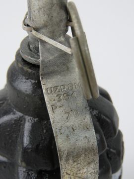 An inert L111 training grenade and an inert F1 Limonka grenade.