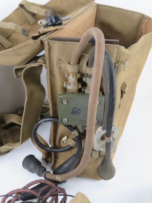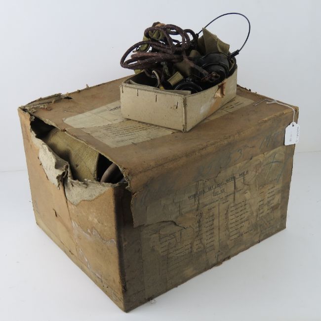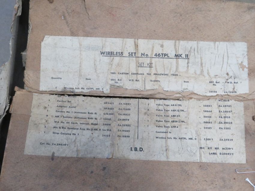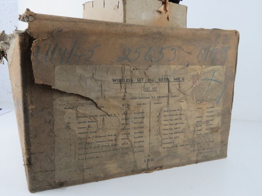 A field wireless set No46 TPL Mk2 in original cardboard box containing wireless set, carriers set, adapter aerial, microphone and head gear x2, canvas carry bag.