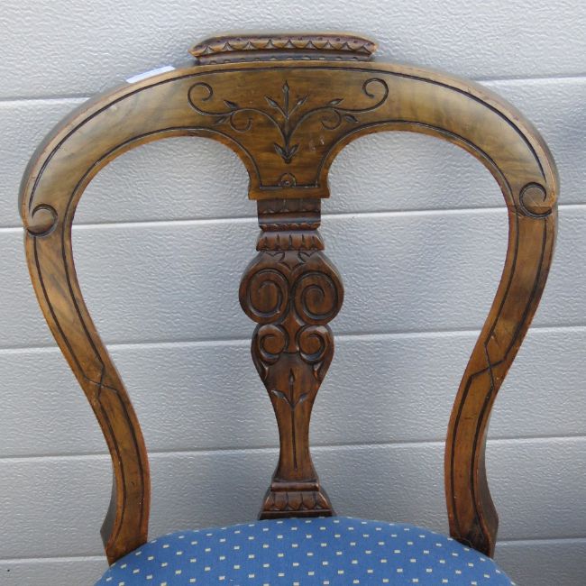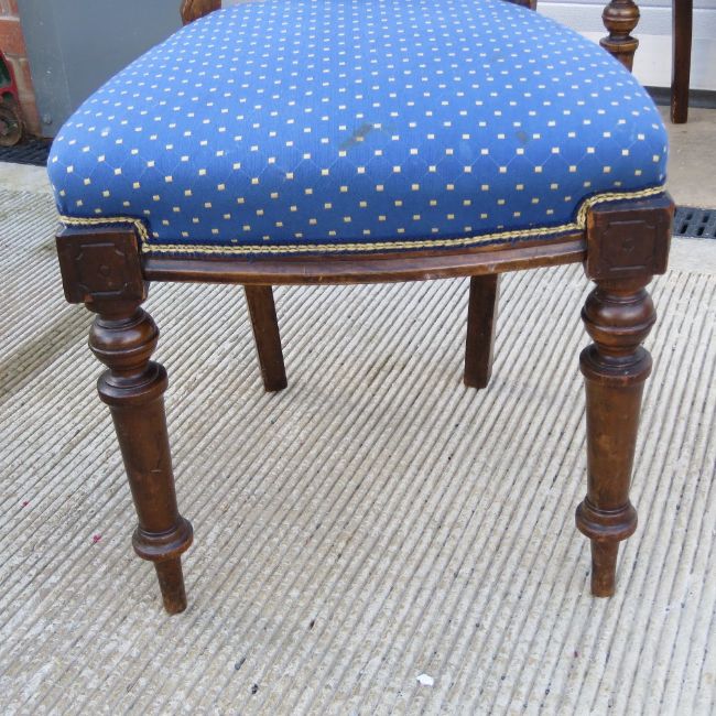 A pair of Victorian mahogany machine carved dining chairs raised over circular turned legs.
