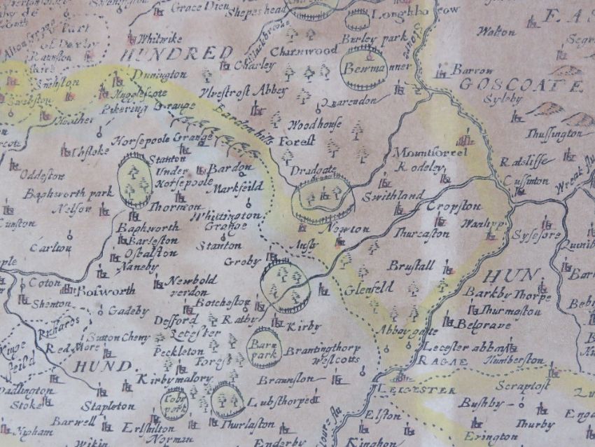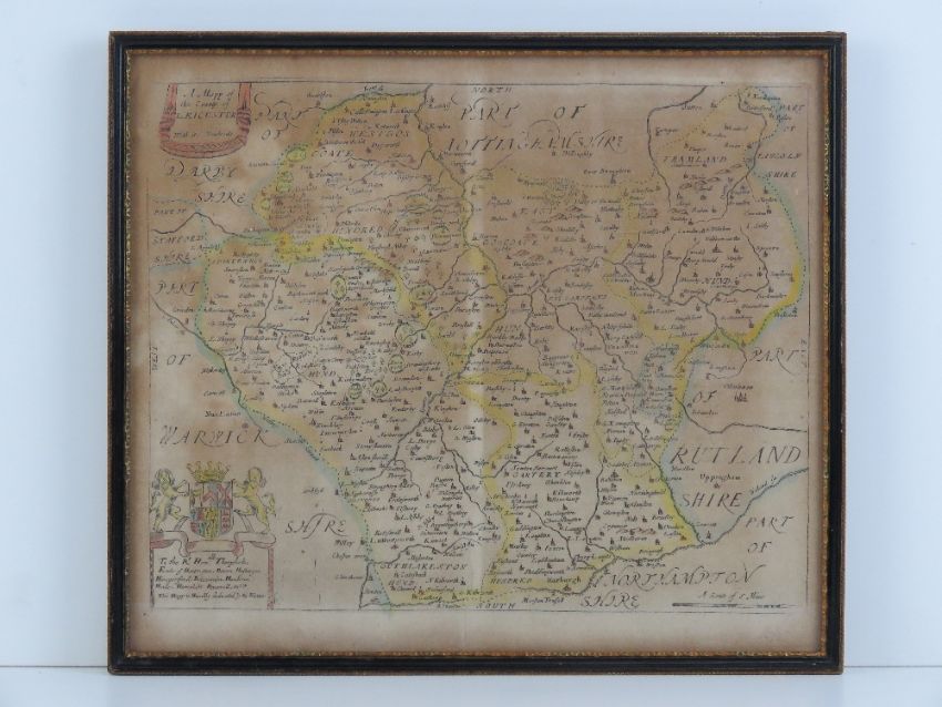 A 17th Century map of Leicester With Its Hundreds by Richard Blome, hand coloured, 32 x 27.5cm.