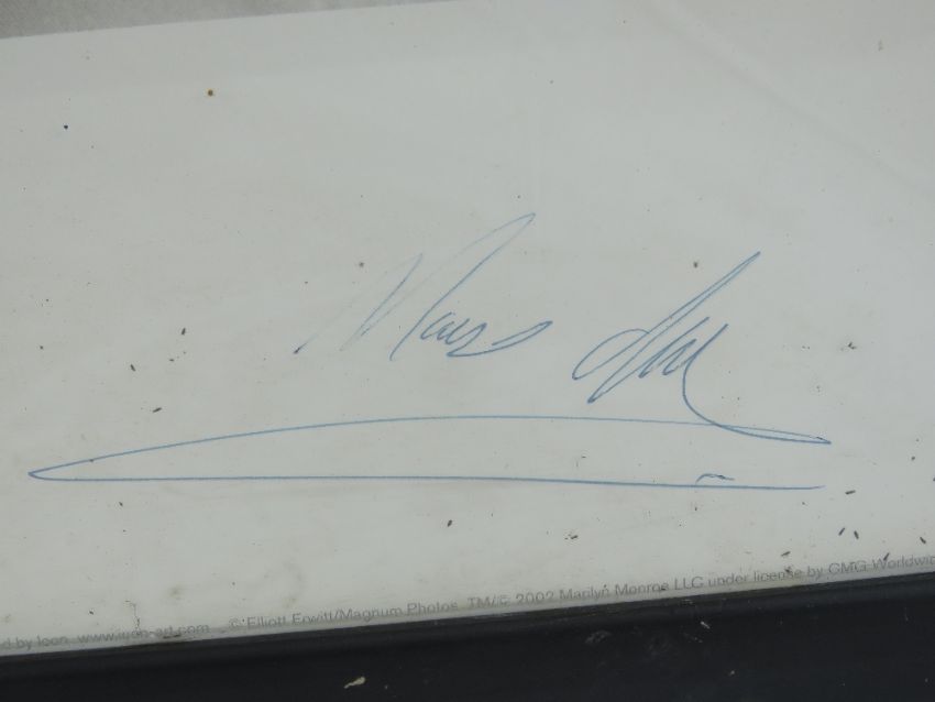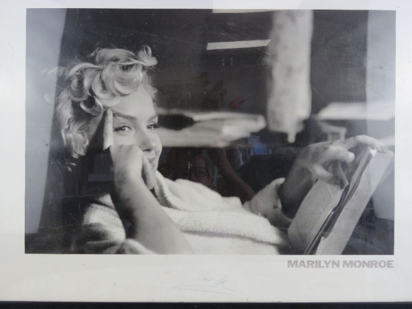 A pair of framed black and white photographic prints being Marilyn Monroe 59 x 79cm and James Dean 79 x 59cm. AF