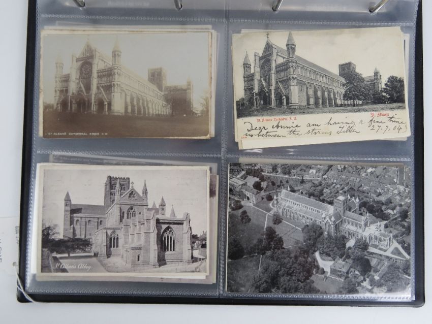 A collection of vintage postcard and photo cards depicting the exterior of the cathedral and Abbey Church of St Albans, seventy six in total.