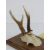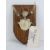 A shield mounted Muntjac deer skull fragment with twin horns bearing label for HM Stockdale Hill Farm Mears Ashby.
