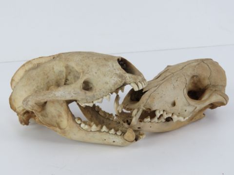 One juvenile fox skull, one badger skull, each measuring 5.5" in length.