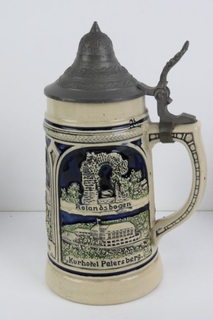 A 'Guinness As Usual' jug having official merchandise stamp to base and standing 12cm high. Together with a German pewter lidded stein and three other brewiana items.