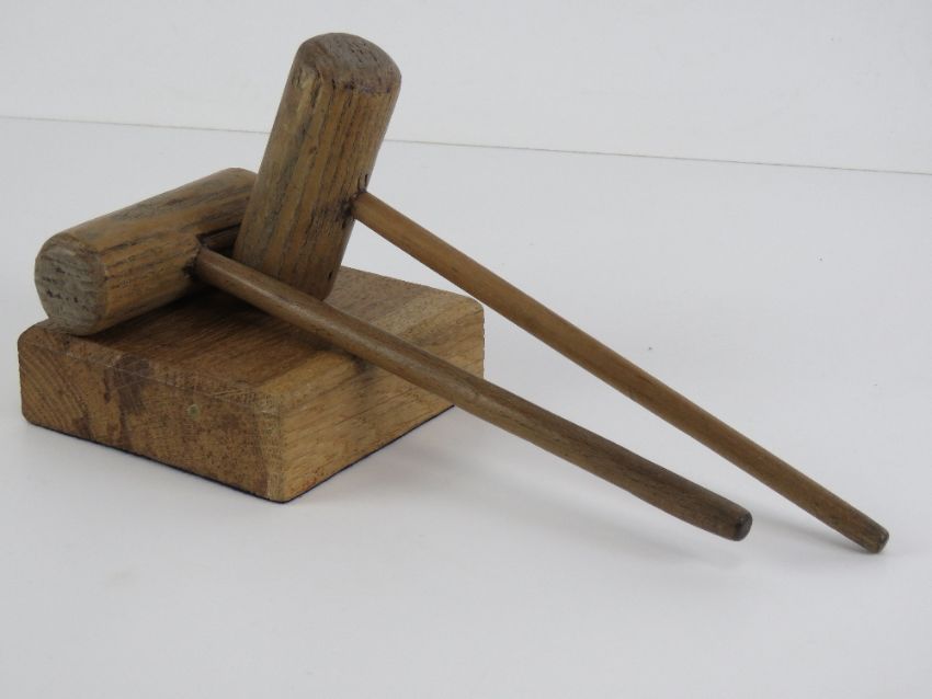 The Royal Antediluvian Order of Buffaloes (RAOB); two ceremonial gavels and one block. Provenance: From the collection of a member of various lodges since 1980s.