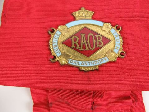 The Royal Antediluvian Order of Buffaloes (RAOB); six KOM red sashes by F C Parry being Good Companion Lodge No8860 (x2), New Forest Lodge No189, Burghfield Lodge No9094, Ernie Fletcher Lodge No9645, and Florence Lady Garvagh Lodge No 5800.