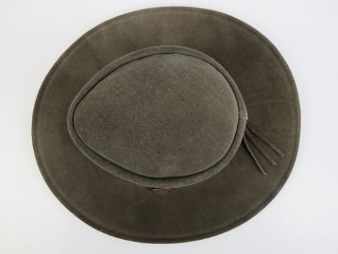 Two felt trilbys, each bearing label for Lock & Co, black trilby size 7 1/8", brown trilby lining slightly a/f size 7 5/8". Together with another trilby size M. Three items.
