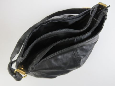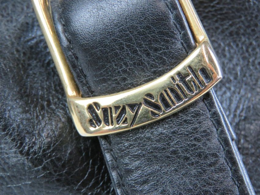 Suzy Smith; Two vintage ladies handbags, one in black leather measuring approx 11" x 13", one in faux crocodile skin measuring approx 13" x 12 1/2".