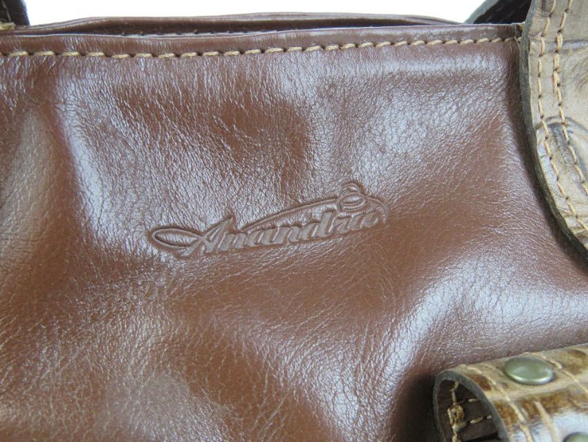 A brown leather and 'crocodile skin' ladies handbag by Anandra. Approx 9" high x 11" wide.