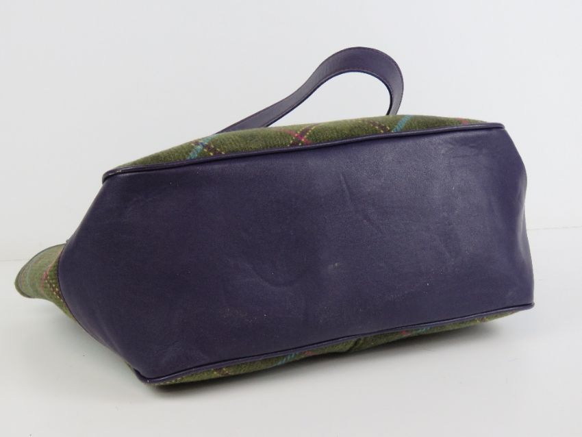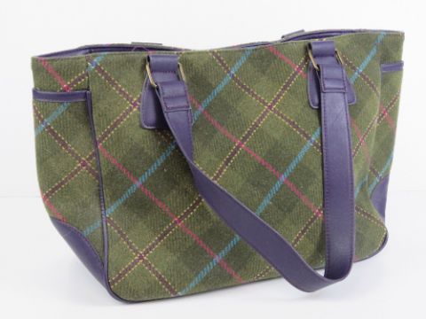 Joules; a green 60% wool tweed handbag approx 10" deep x 12 1/2" wide.