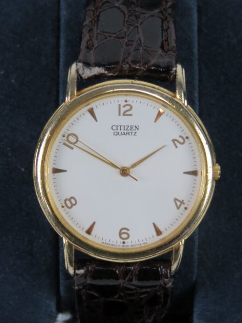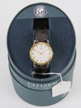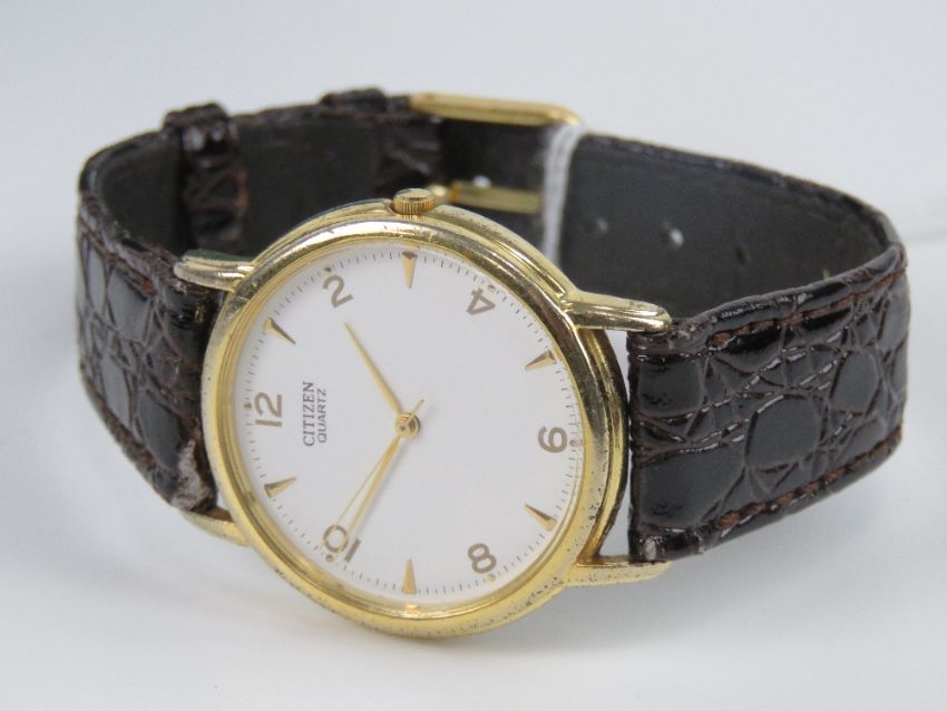 A Citizen quartz wristwatch having leather faux crocodile skin strap, in associated box.