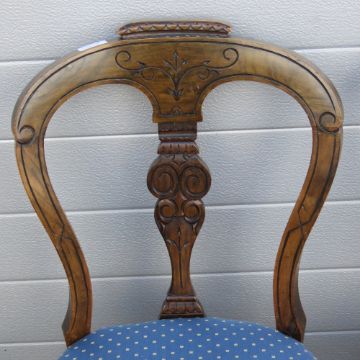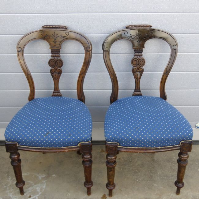 A pair of Victorian mahogany machine carved dining chairs raised over circular turned legs.