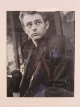 A pair of framed black and white photographic prints being Marilyn Monroe 59 x 79cm and James Dean 79 x 59cm. AF