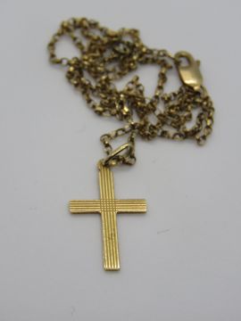 A 9ct gold crucifix on 9ct gold chain necklace, 3.2g.